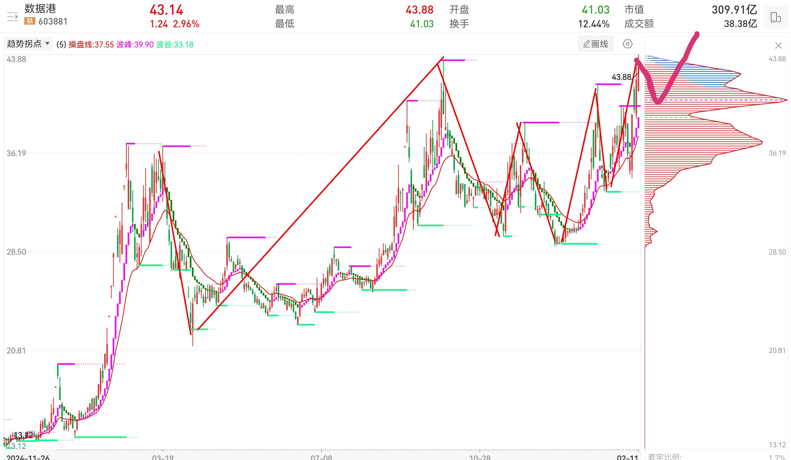 $数据港(SH603881)$ 看我画线准不准