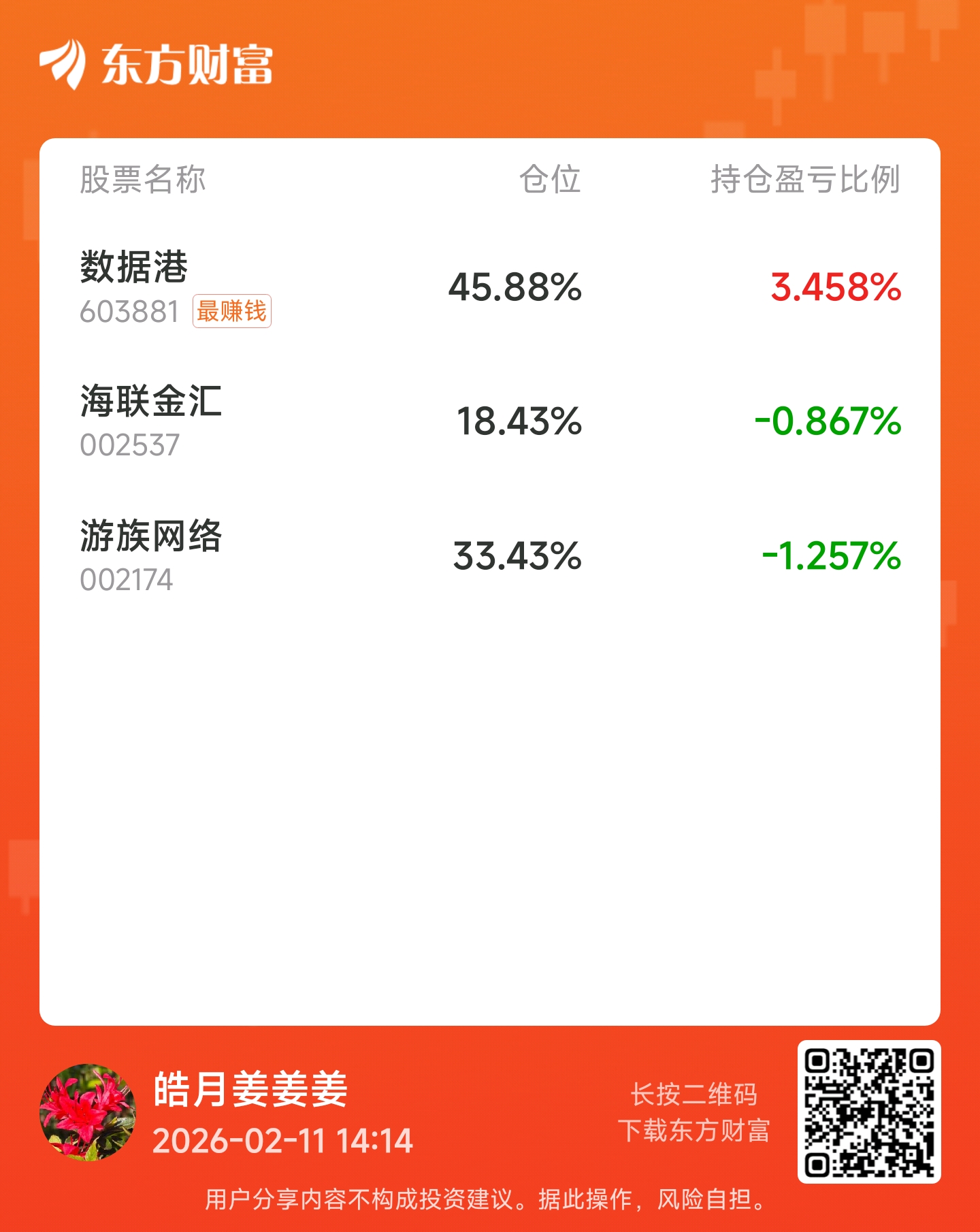 $数据港(SH603881)$ $游族网络(SZ002174)$ $海联金汇(SZ002537)$ 准备这三个票不动,拿到节后了。。一直跑票一直亏钱。