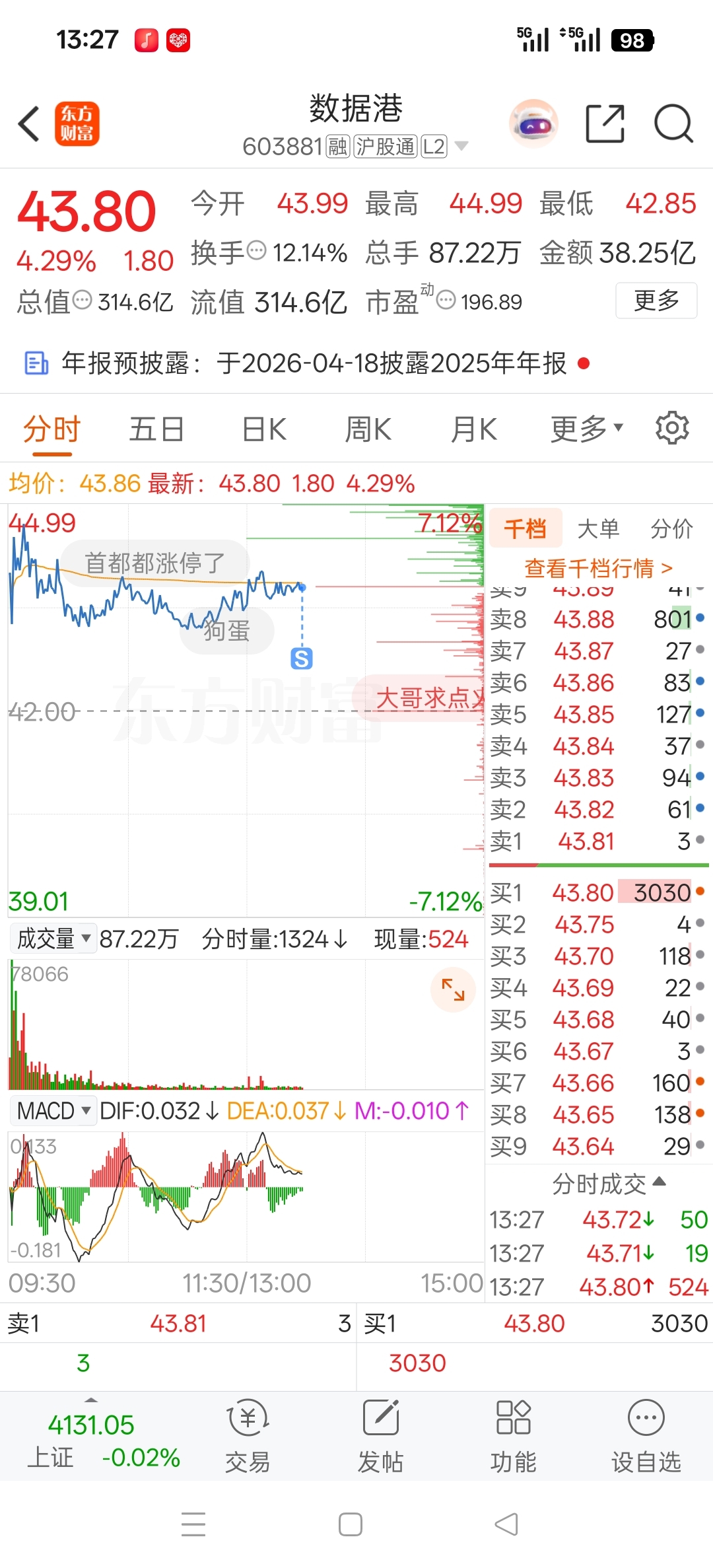 $数据港(SH603881)$ 卖了,你起飞吧,等不下去,太弱