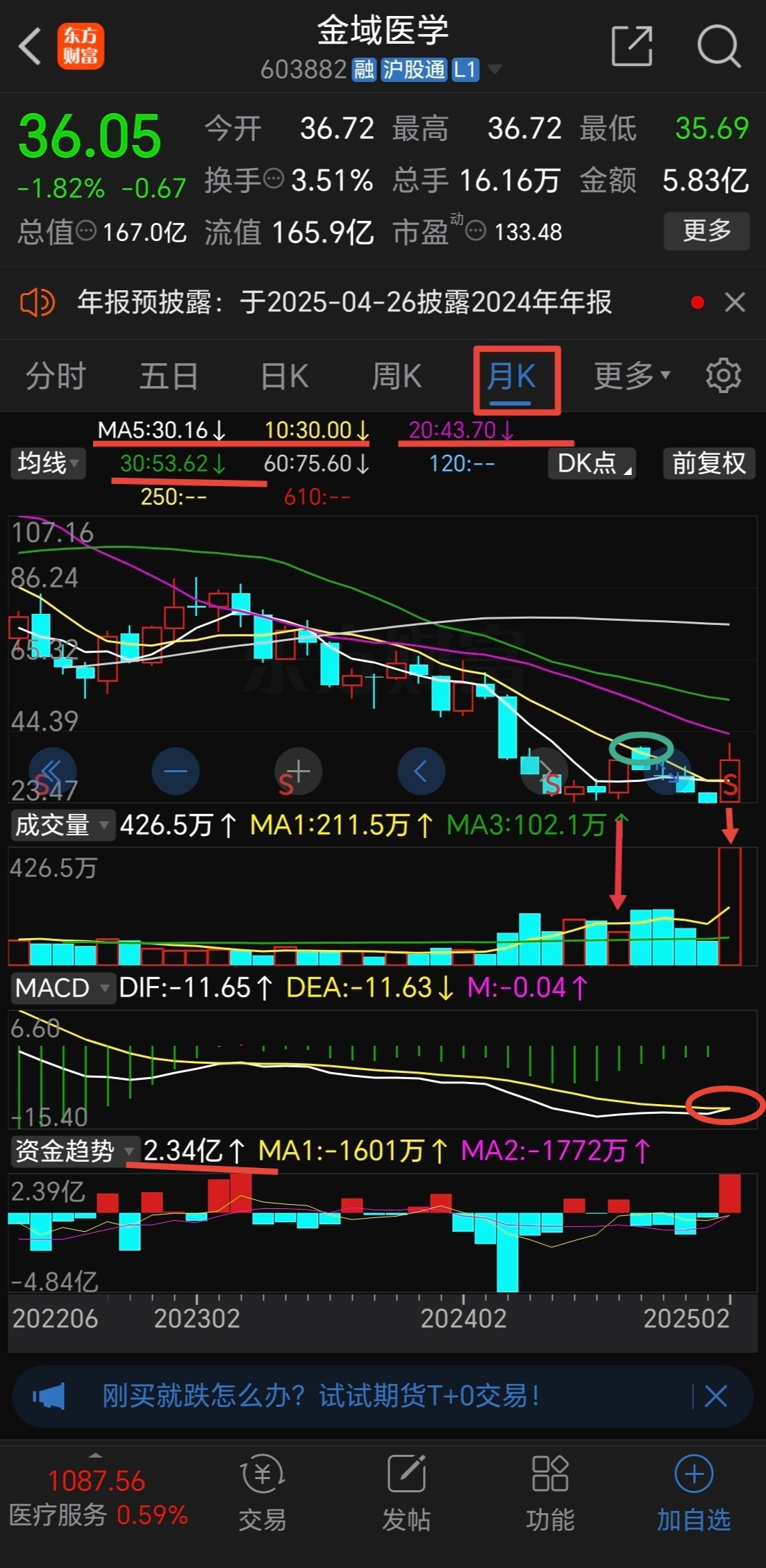 前面的下跌基本是10月均线压制股价,前面的红箭头的月线直接反包前面四个月,只是缩量,受阻10月均线继续下跌,本月量能放大明显,五倍量概率极大,目前为止净流入2.34亿,反包前三个月,突破5,10月均线,5月均线金叉10月均线,以前20多个月的10月均线压制已经失效,那么至少攻击20月线是大概率的,估计真正的调整应该是攻击30月线甚至是60月线后!