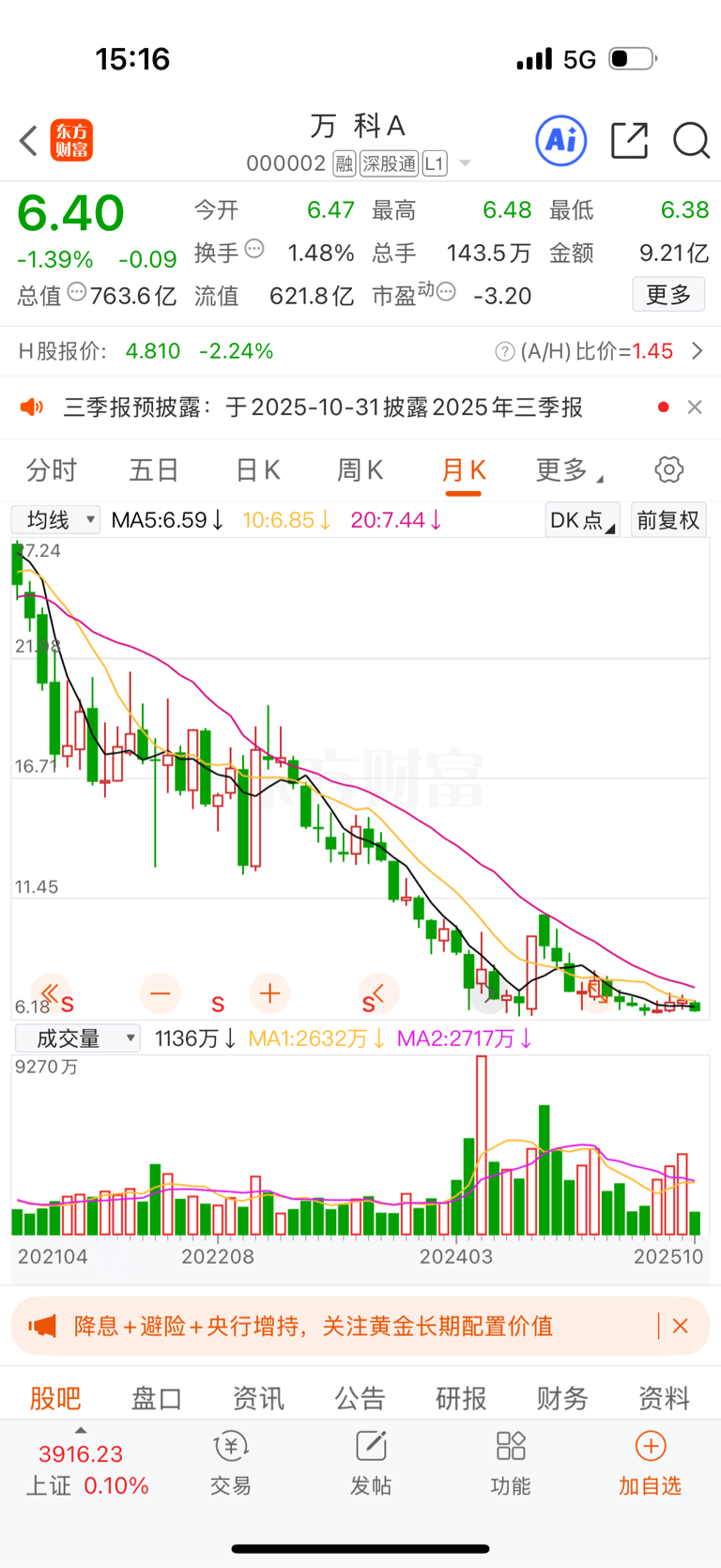 $金域医学(SH603882)$ 万科都快差不多了,金域估计也要关门了。