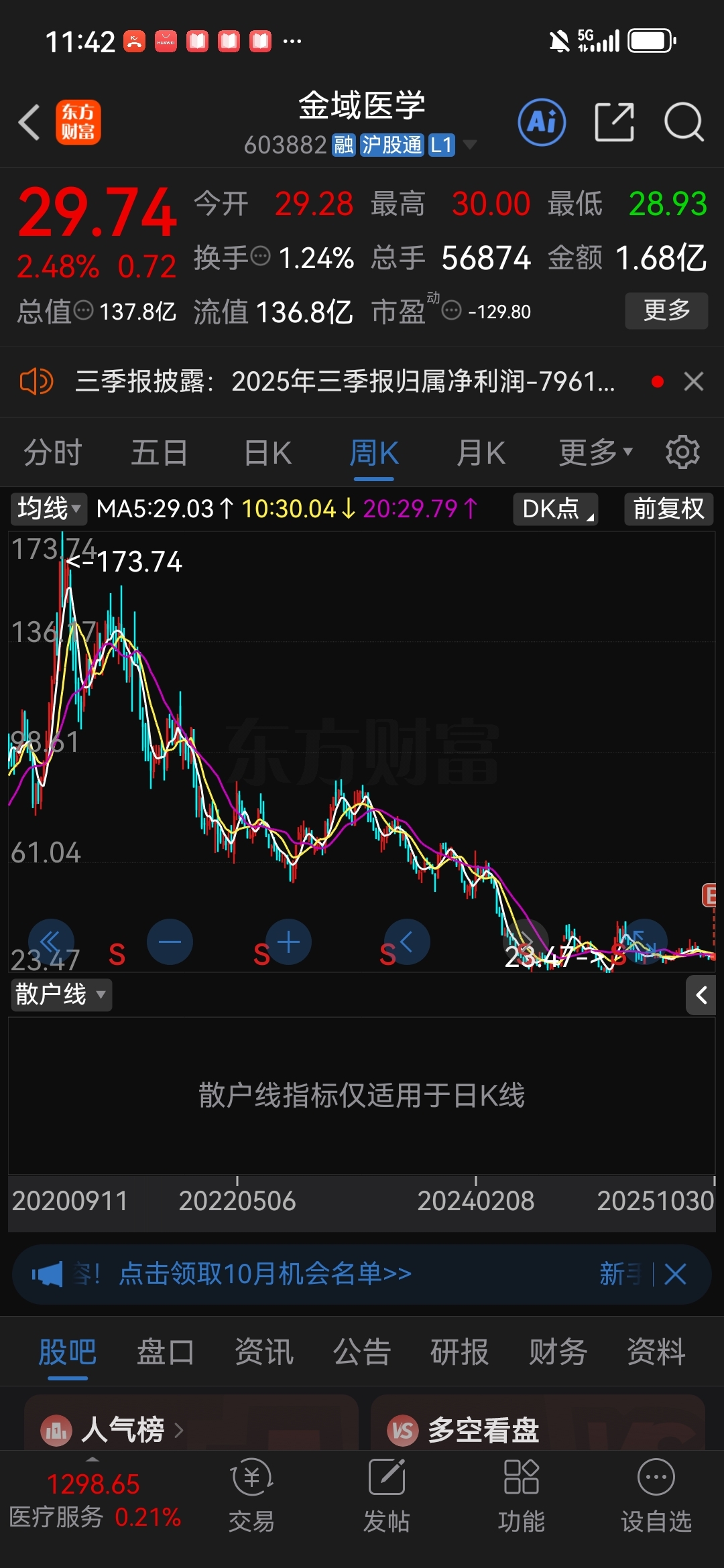 $金域医学(SH603882)$ 建仓,目标300你们不会有意见吧