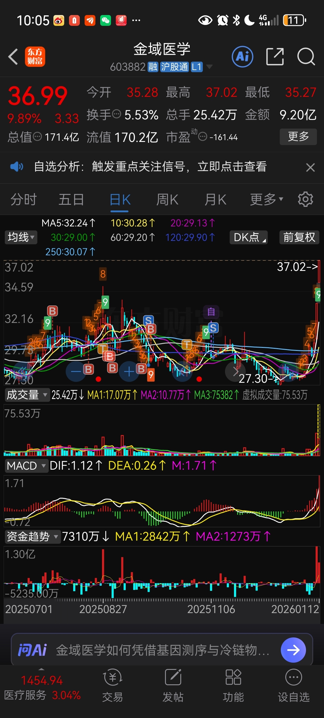 $金域医学(SH603882)$ 上次亏 2 万割了