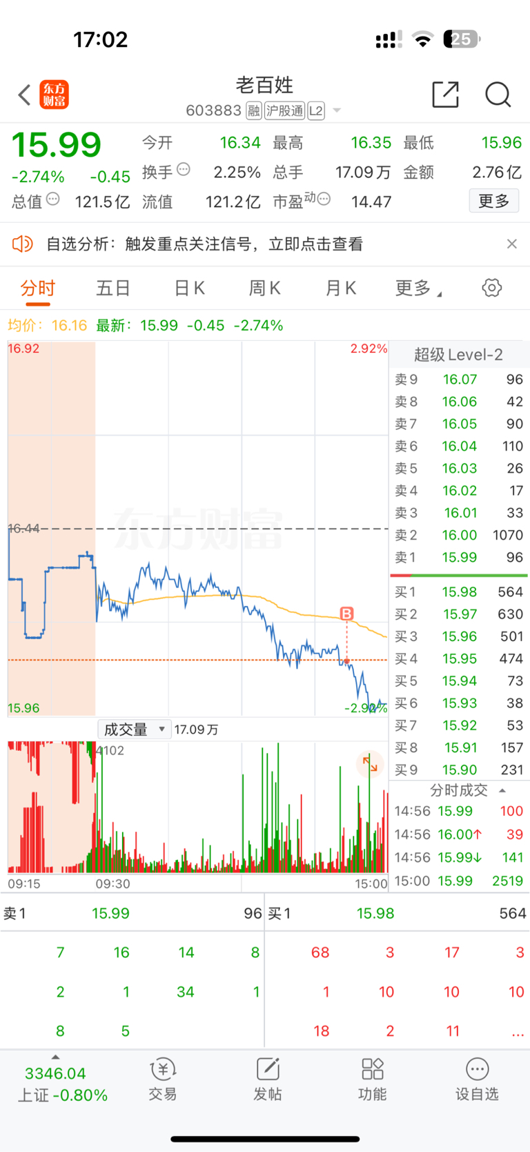 $老百姓(SH603883)$ 大家看吧,我来了,所以跌了