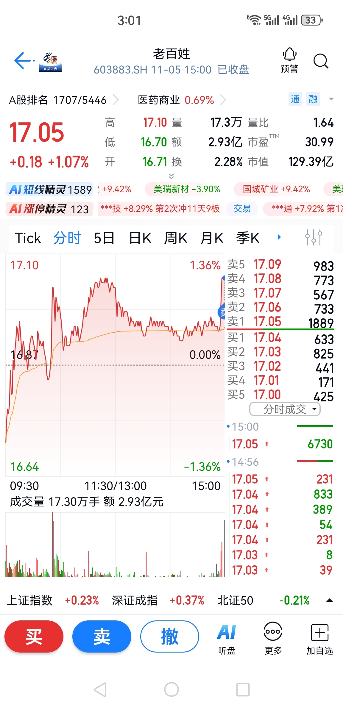 $老百姓(SH603883)$ 卖了卖了,留下的发财吧,感觉没走结束