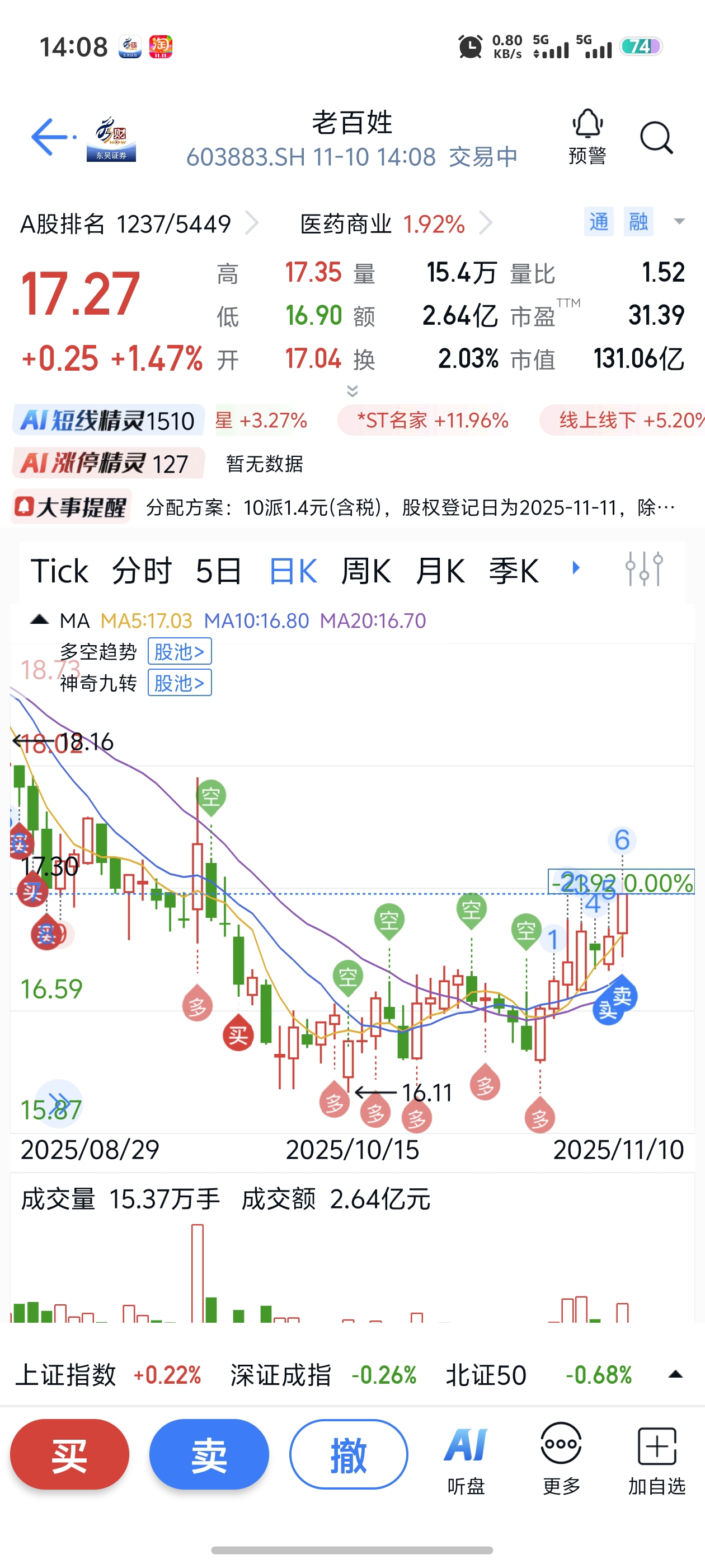 $老百姓(SH603883)$ 我不卖它就不会涨,我得天天卖一点
