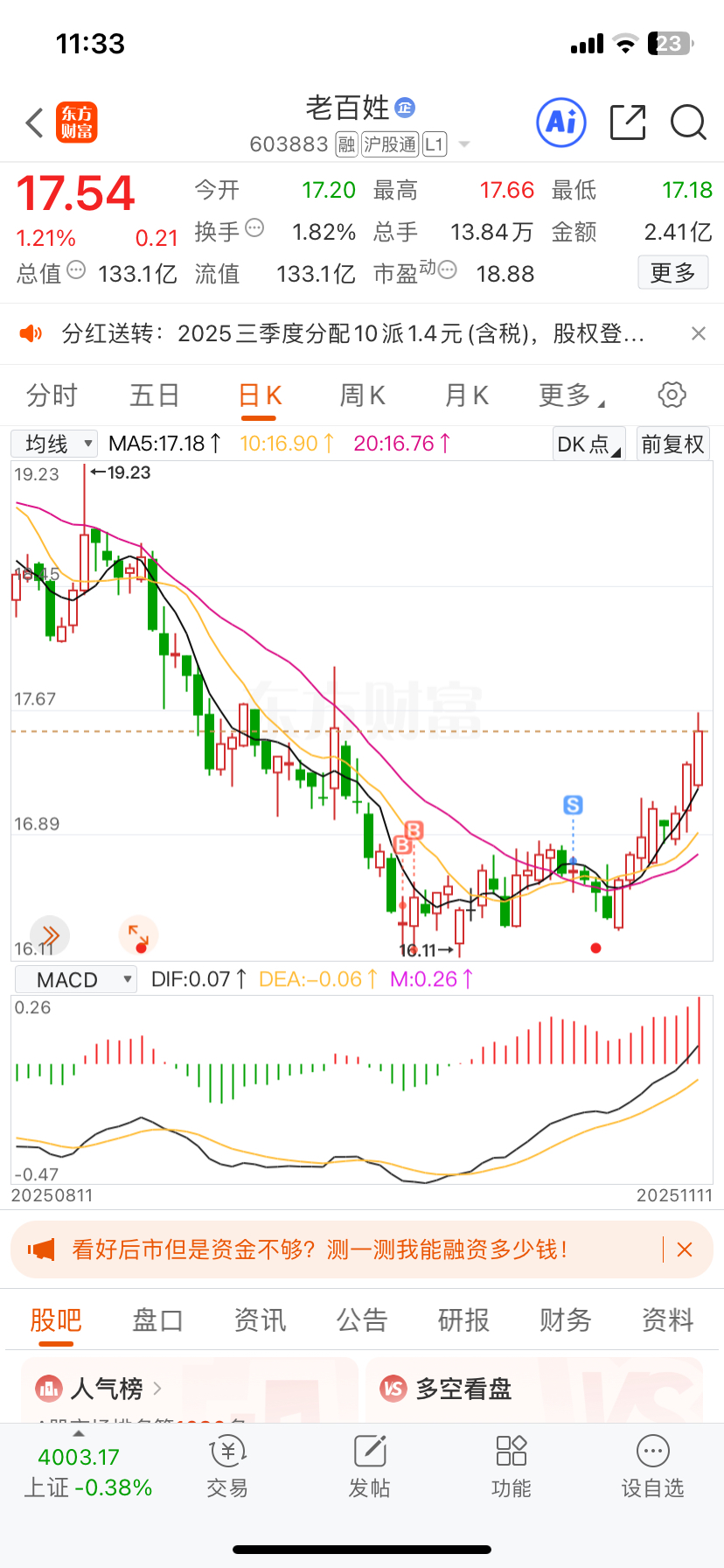 $老百姓(SH603883)$