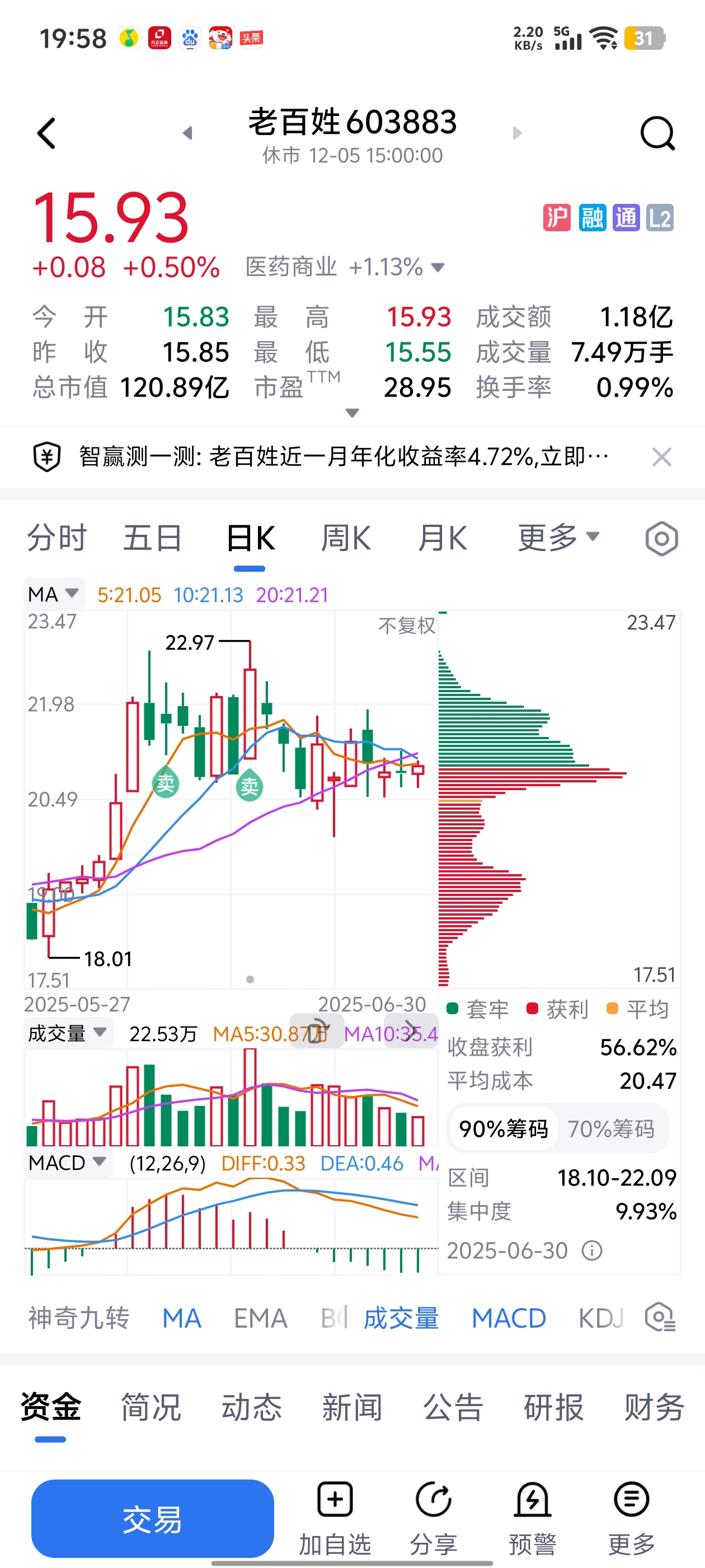 $老百姓(SH603883)$ 几个月来看这里新低,外面大好行情。还好当时卖了!