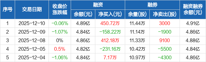 老百姓:融资净买入450.72万元,融资余额4.89亿元(12-10)