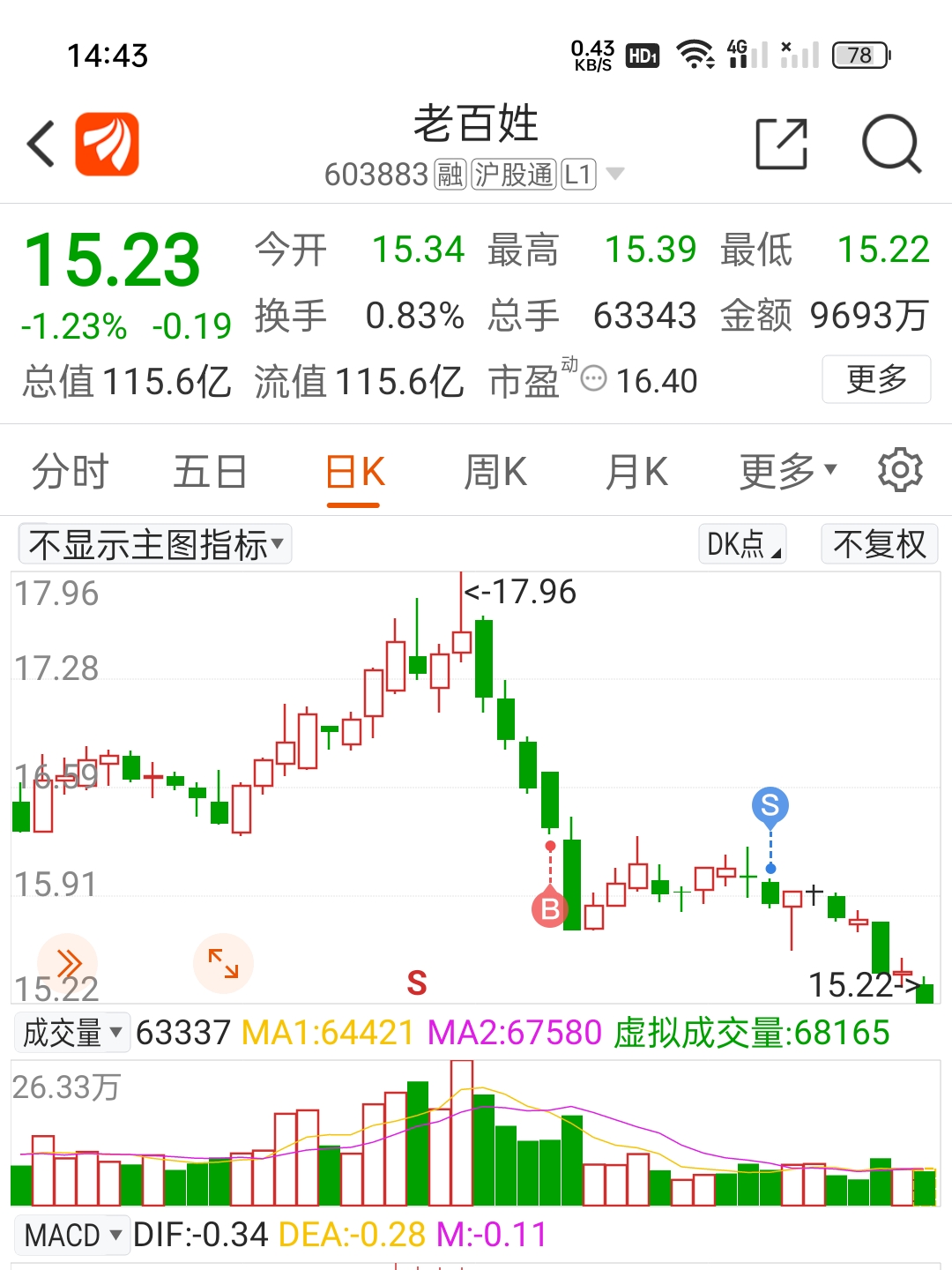 $老百姓(SH603883)$ 只能观望。