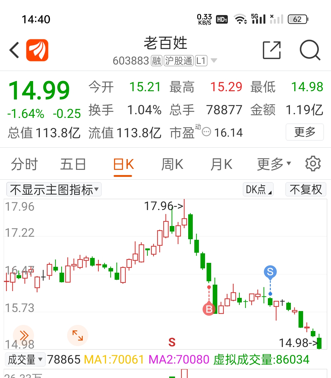$老百姓(SH603883)$ 继续观望。