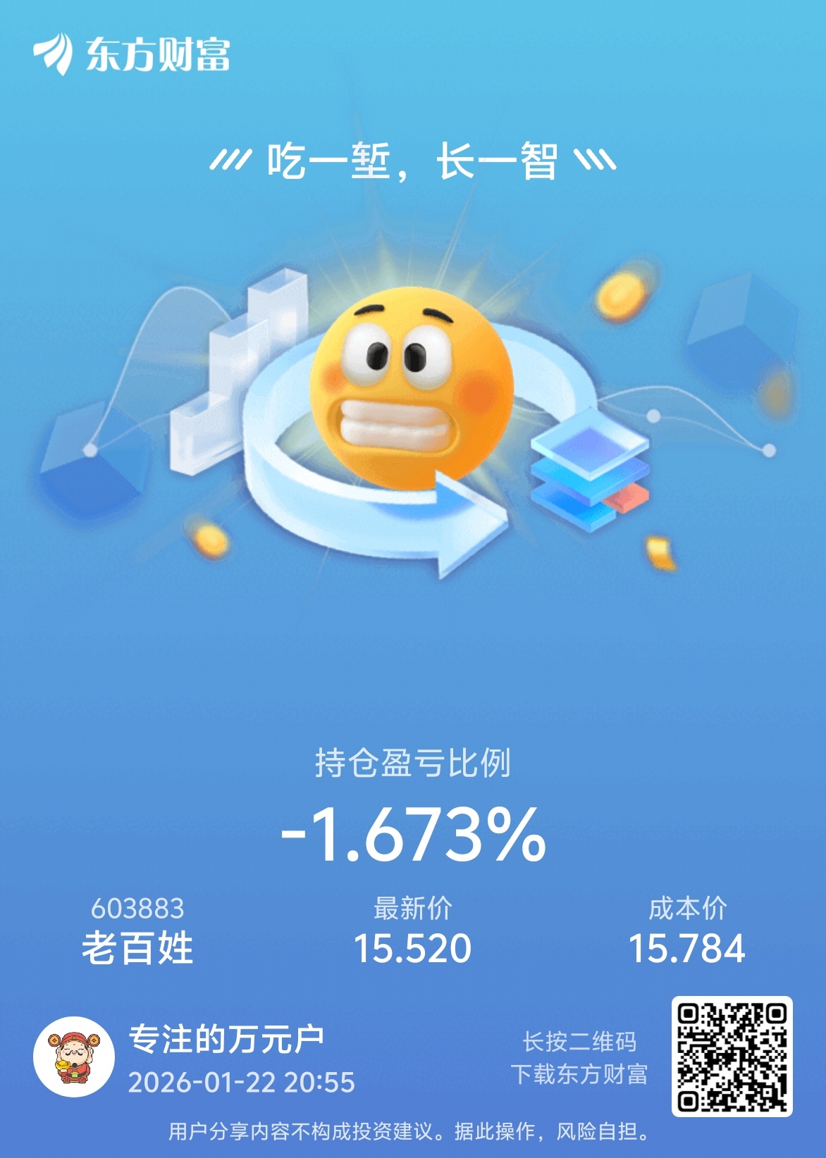 $老百姓(SH603883)$ 补仓了,明天跌1个点#复盘记录#