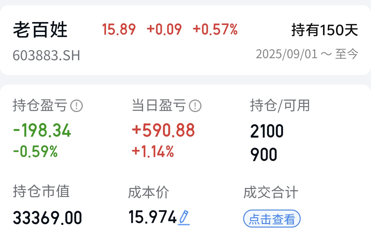 $老百姓(SH603883)$ 哈哈从18块买你150天了回本有网