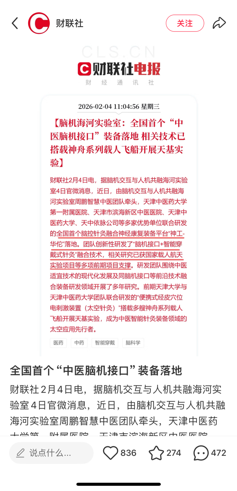 $老百姓(SH603883)$ 这怎么没让医药股整体嗨一下,真神了没想到中医药和脑机接口加航天概念能以这种方式联系起来,量化干活啊!!赶紧拉