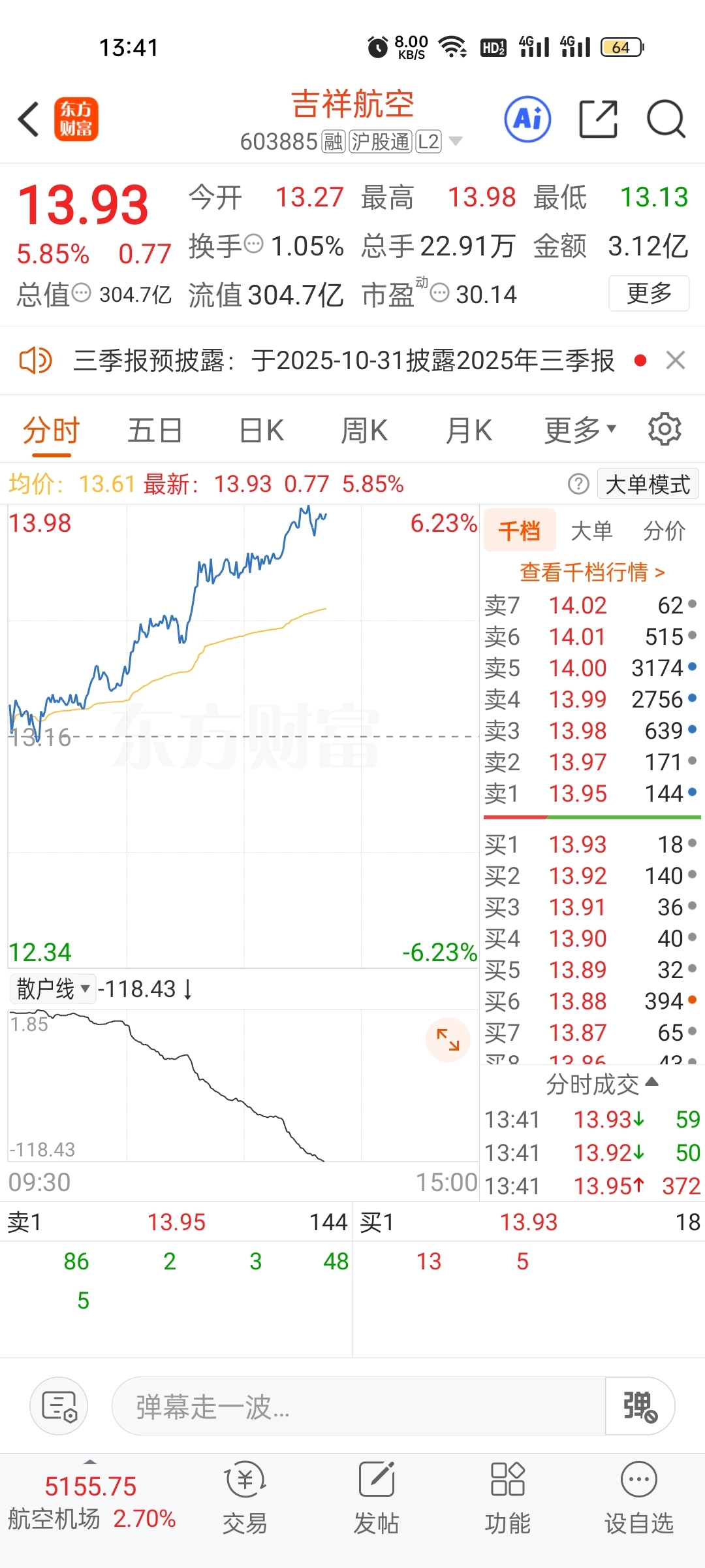 $吉祥航空(SH603885)$ 散户在卖,兄弟们不用怕,不用怕。