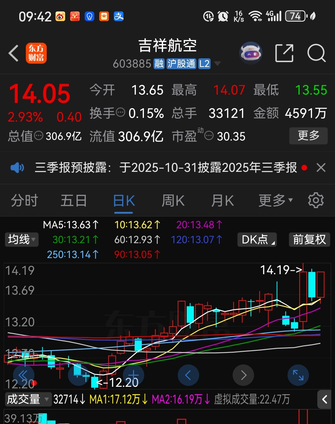 $吉祥航空(SH603885)$ 漂亮啊,大阳线反包,两阳夹一阴,多方炮走势,看涨