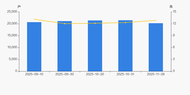 2025年9月10日至今,公司股东户数有所下降,区间跌幅为2.19%。2025年9月10日至2025年11月28日区间股价下降2.21%。