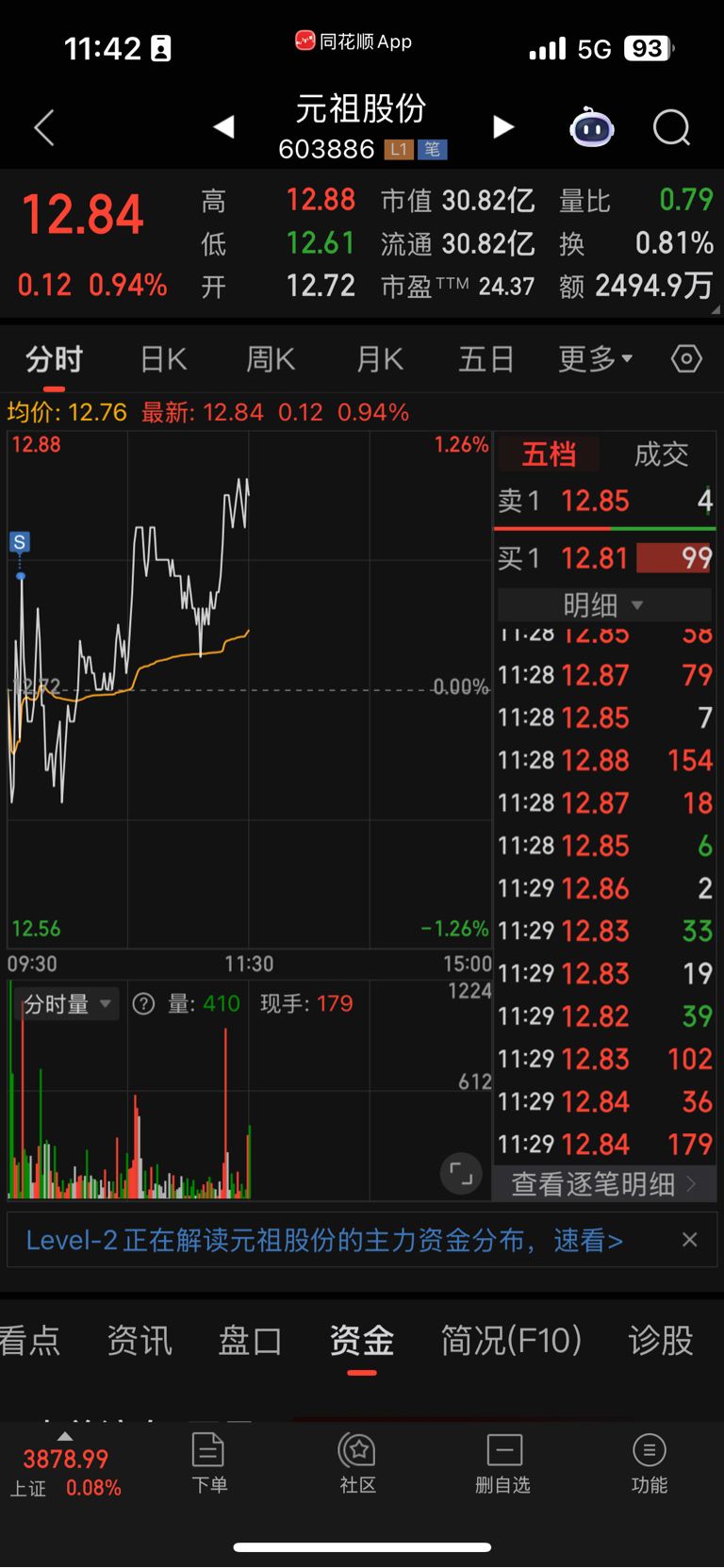 $元祖股份(SH603886)$ 哎、哎哎哎,被冷智哈忽悠高抛低吸、这下逮蛇了…看下午有机会买回来不