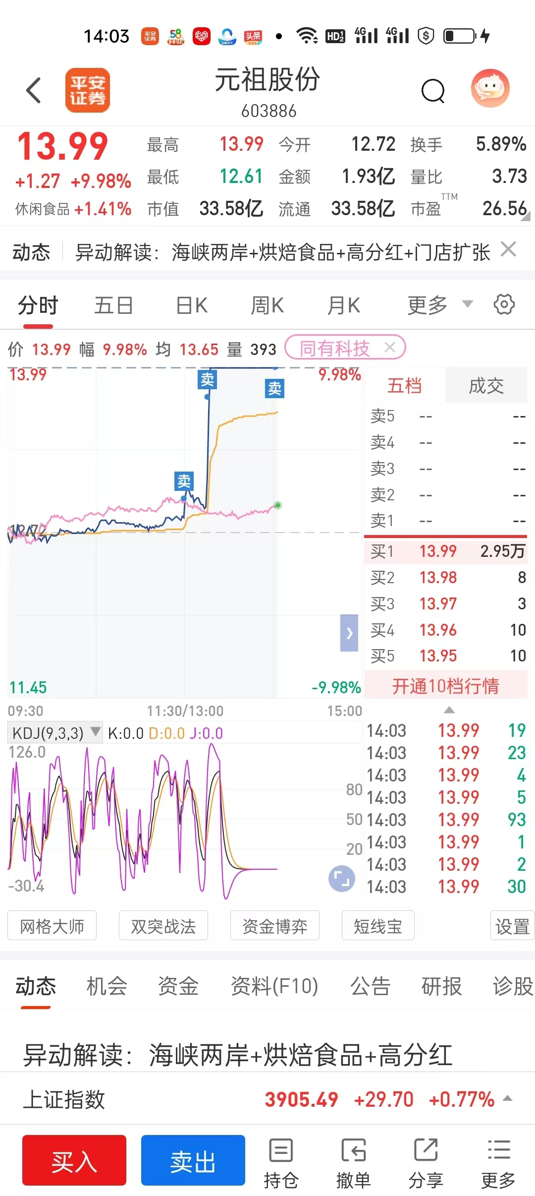 $元祖股份(SH603886)$ 在卖一万股留点底仓每天坐梯