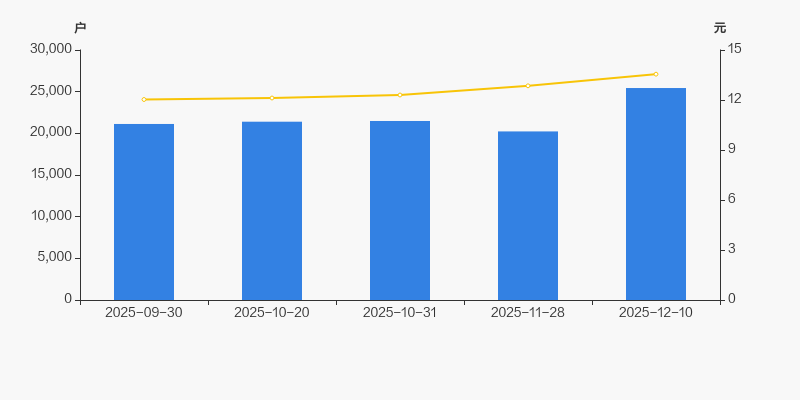 2025年9月30日至今,公司股东户数显著增长,区间涨幅为20.42%。2025年9月30日至2025年12月10日区间股价上涨12.64%。