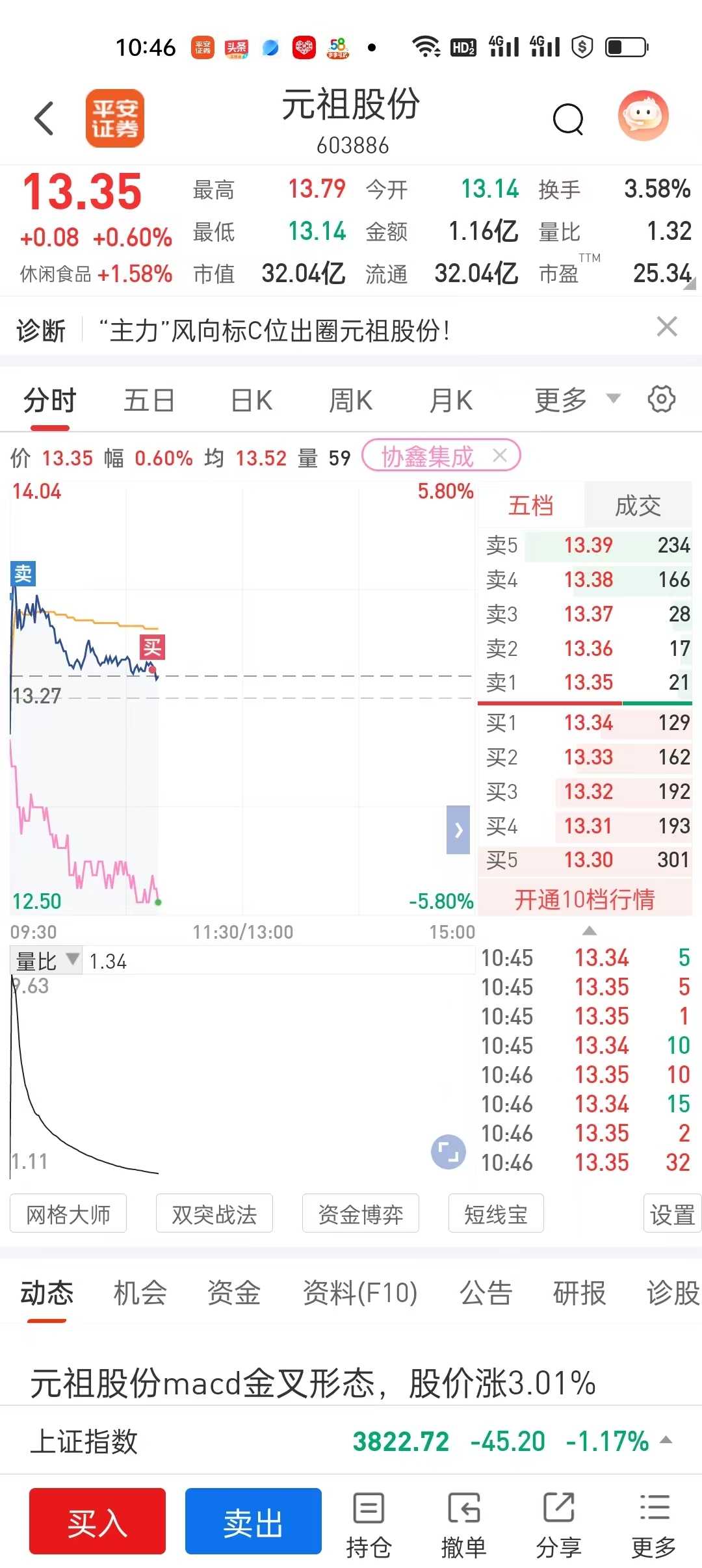 $元祖股份(SH603886)$ 今天的钱已经到手专治各种不服。谢谢主力拉升