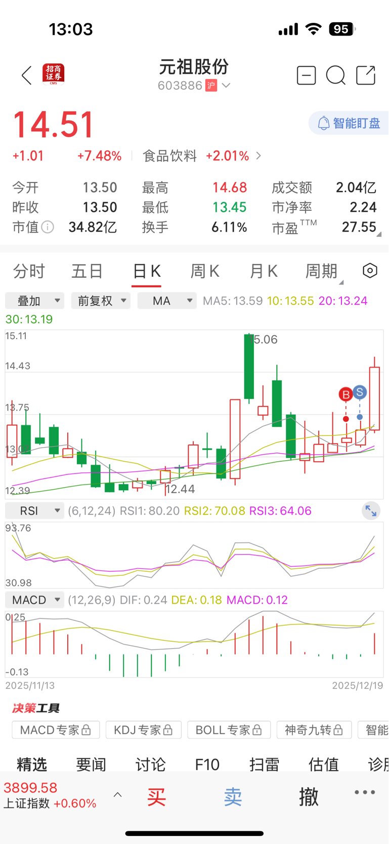$元祖股份(SH603886)$ 昨天尾盘卖的,然后买入御银股份,拍断大腿