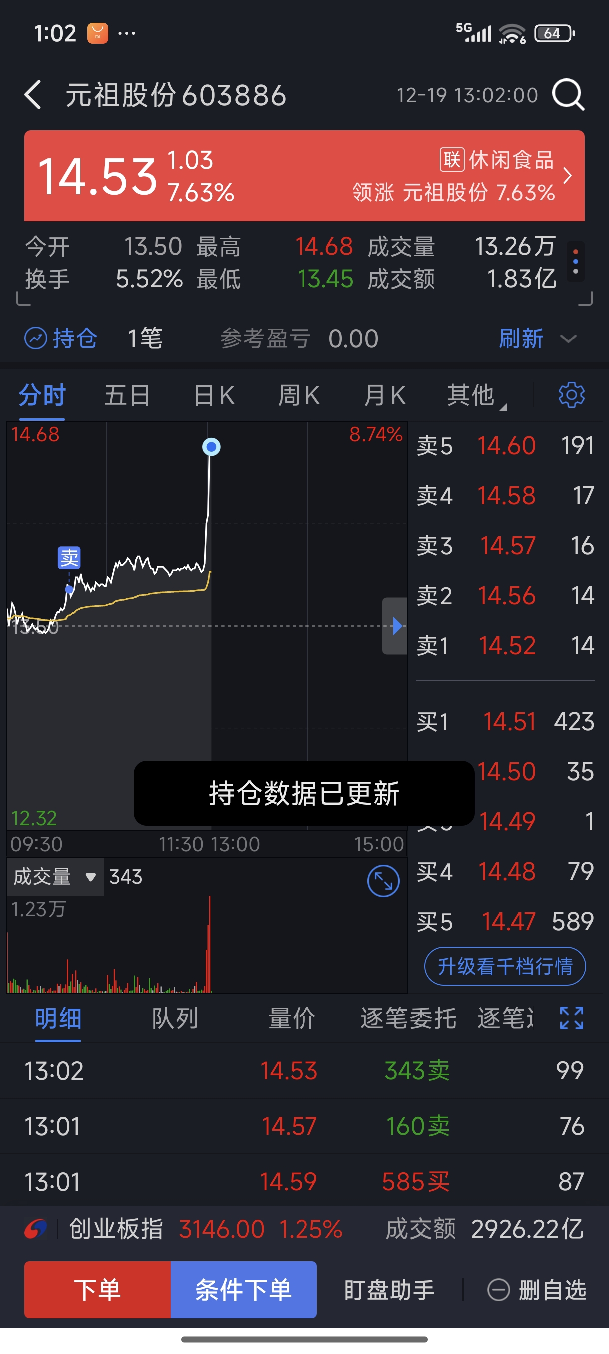 $元祖股份(SH603886)$ 早上居然清仓了,