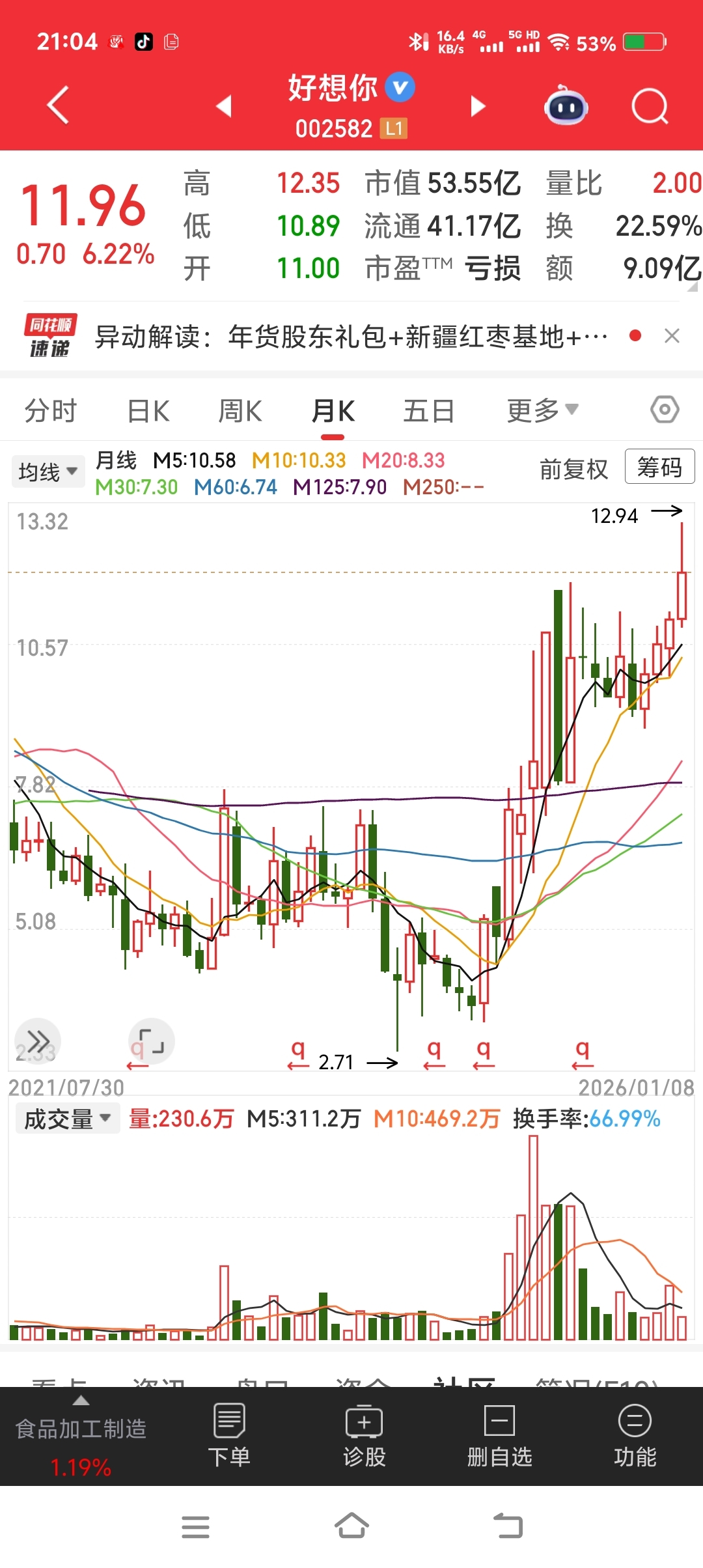 复了下盘,食品饮料板块真是出大牛股的地方!五倍,十倍的比比皆是,元祖你什么时候能走牛啊?