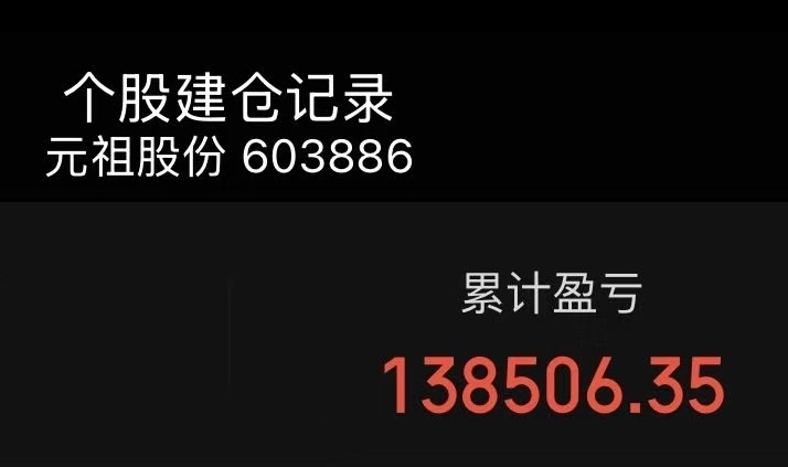 感恩元祖,牛市以来还是挣了13.8个,每年的蛋糕月饼粽子钱都有了,谢谢元祖。提钱