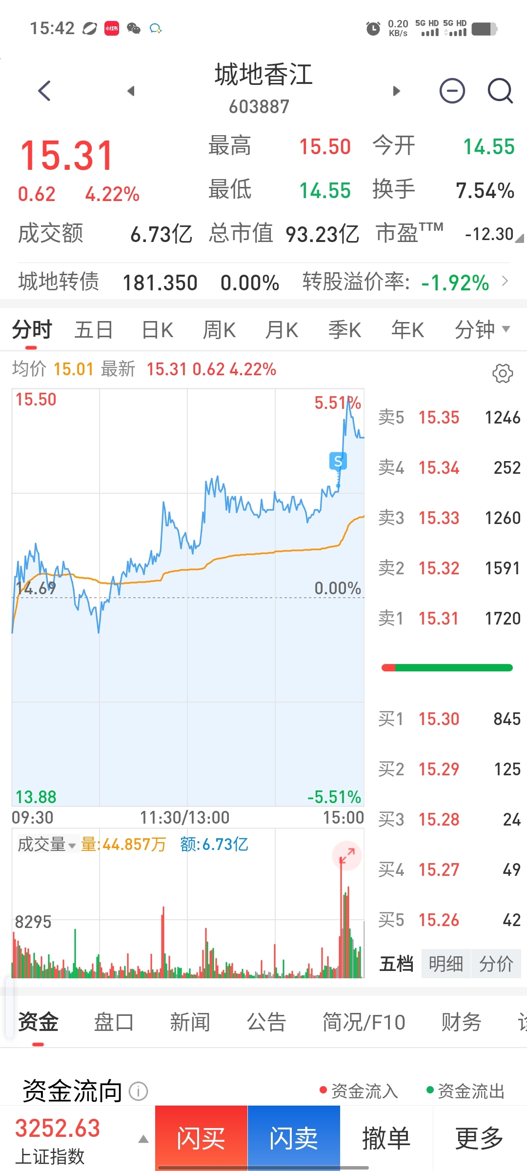 $城地香江(SH603887)$ 我预判了今天能红,没卖到高点。一出货就拉升了!