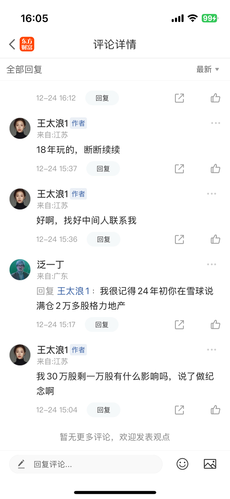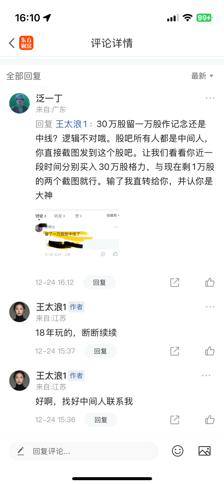 $城地香江(SH603887)$ $格力地产(SH600185)$ $汉得信息(SZ300170)$ 请问谁能找到王太浪,他为人矛盾两极化还爱说谎,装大款装大神。他欠我200元还没收到,也不回复我,以下是证据。
