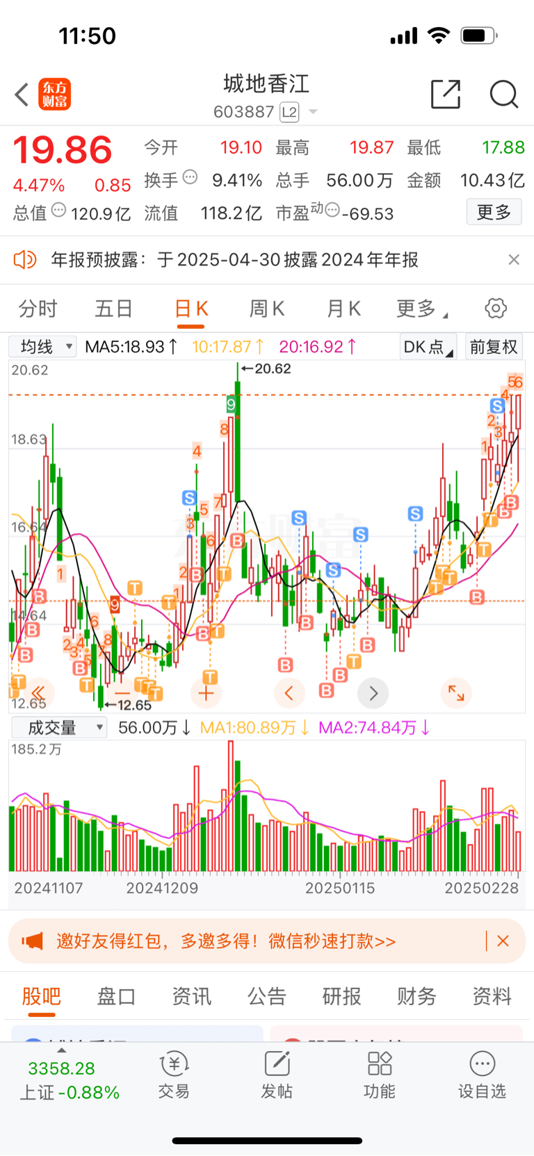 $城地香江(SH603887)$ 今天没动,早上看着下跌也心烦,前两天乱动就后悔了有利润都动没了,这个选择方向变盘的价位还是不动是最好的交易策略,看来坚持是对的,站稳20.5就梭哈主升浪应该是来了,可能周末有消息