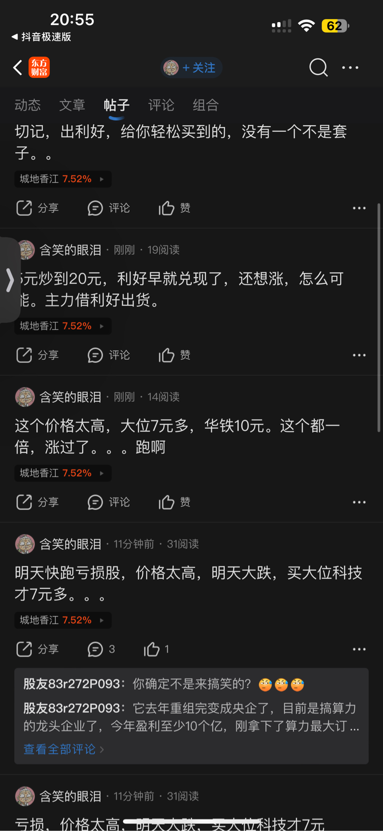 $城地香江(SH603887)$ 什么成分?这是亏了多少能这么大戾气啊?唱空完全不带脑子 给新进来的小散都吓跑哈哈哈哈 散户跑的越多我们老香江人赚的越多