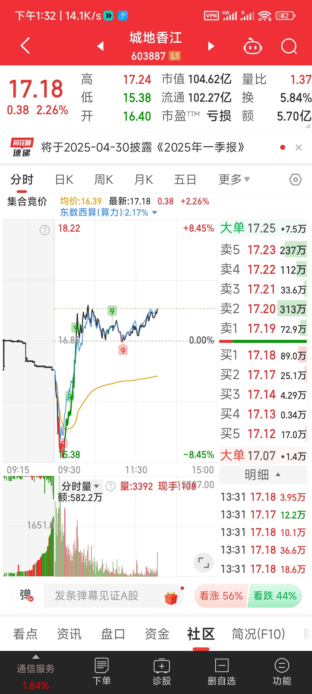 $城地香江(SH603887)$ 跟板块走势一模一样,没有独立性