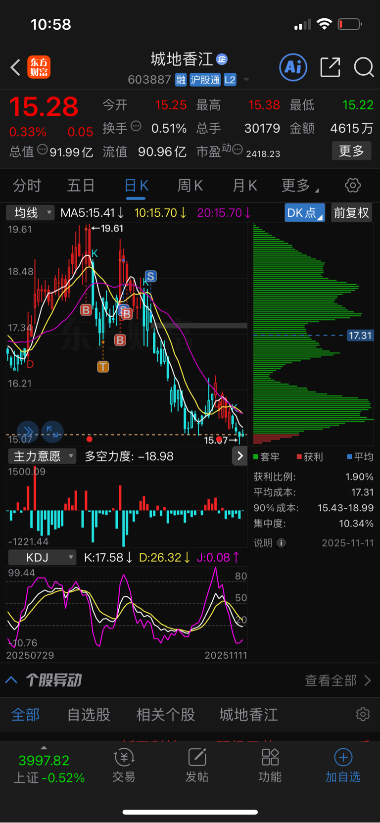 $城地香江(SH603887)$ 割肉走的,亏几万,现在看看还好割了