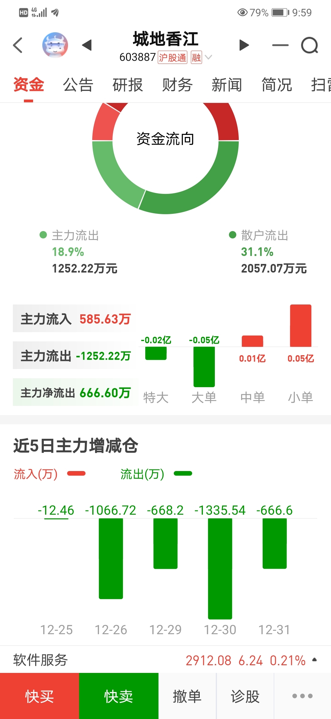 $城地香江(SH603887)$ 大资金一直在流出,公司是不是有暴雷的可能?