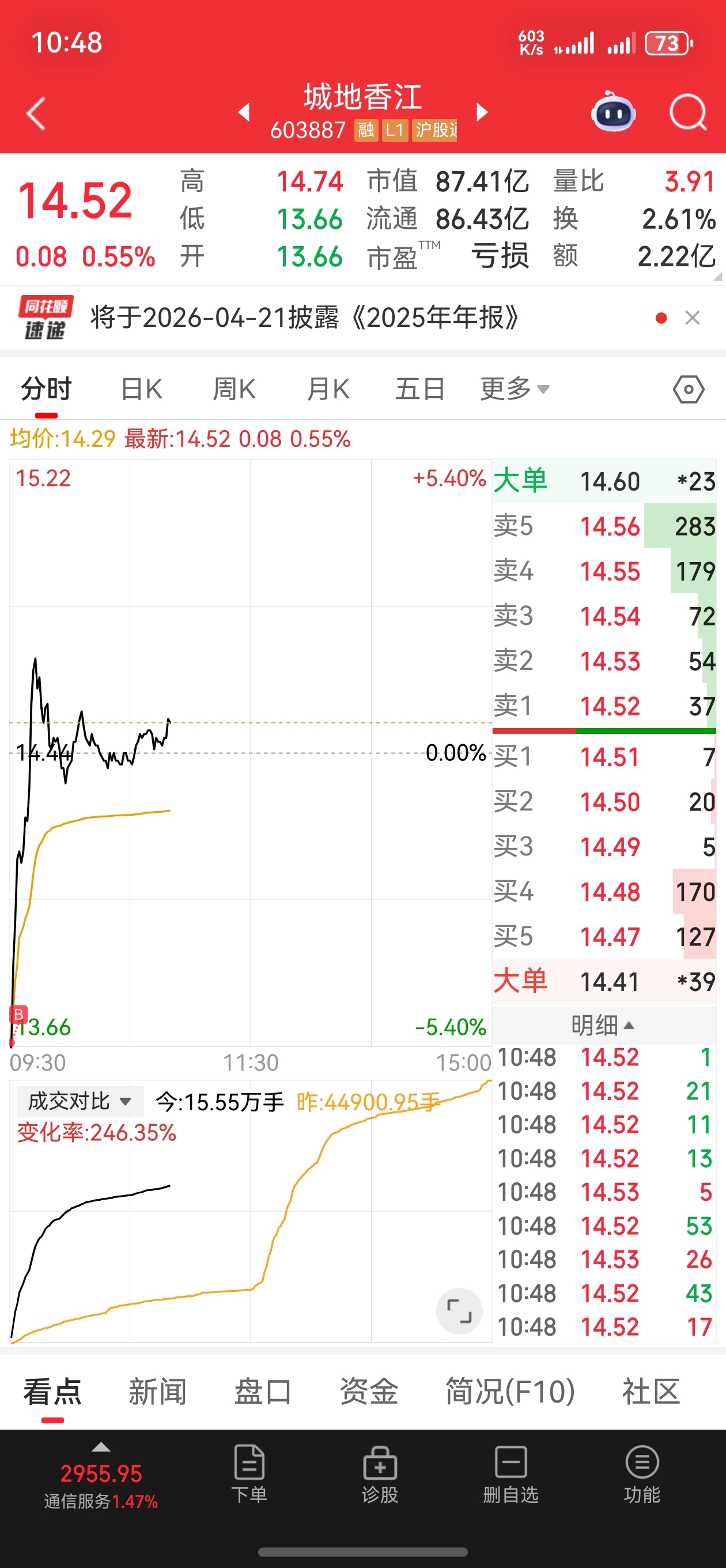 $城地香江(SH603887)$ 尔舍我取