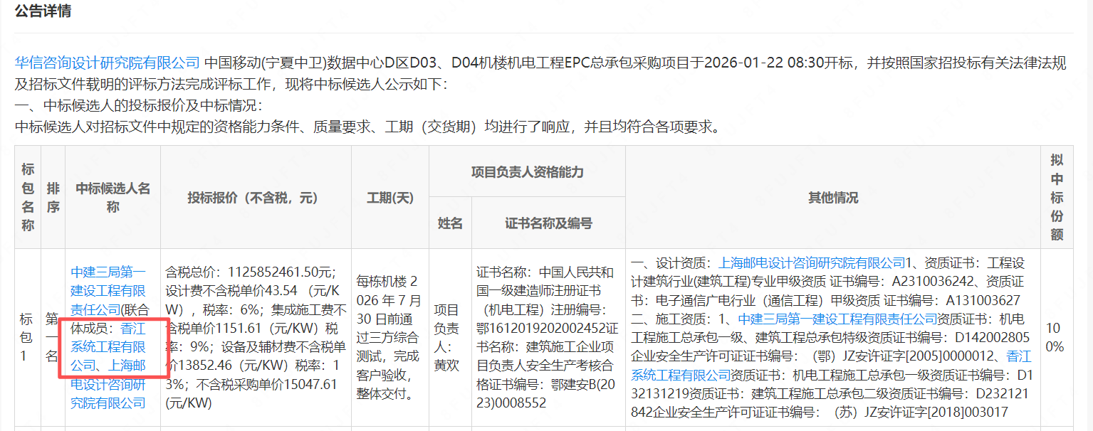 开张大吉,总价11亿,城地至少6个亿吧,可以涨了没,小庄子。今晚发个中标候选公告,顺便发年报预告润润色,继续做标王,这样可以认可机电包工头的成长性了吧,国家算力枢纽核心参与商。