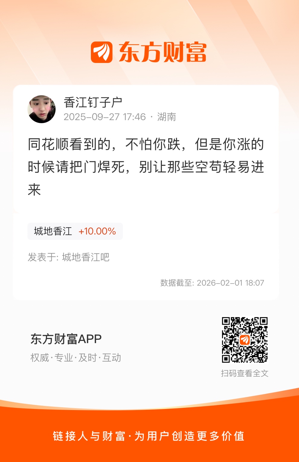 温馨提示: 1.根据《证券法》规定,禁止编造、传播虚假信息或者误导性信息,扰乱证券市场;2.用户在本社区发表的所有资料、言论等仅代表个人观点,与本网站立场无关,不对您构成任何投资建议。用户应基于自己的独立判断,自行决定证券投资并承担相应风险。《东方财富社区管理规定》