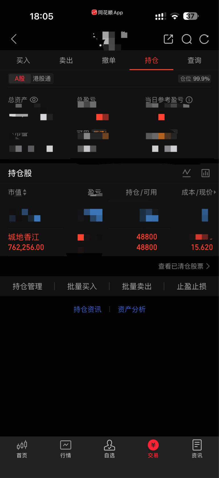 $城地香江(SH603887)$ 老香江们来晒一下持仓,我先来488手