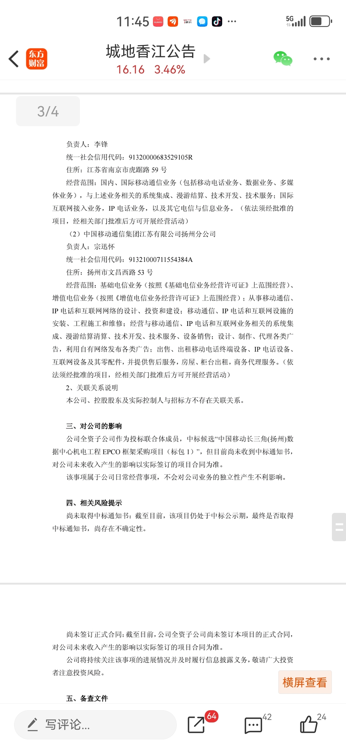 $城地香江(SH603887)$ 好消息啊!中标通知书来了!12个亿!#炒股日记# #强势机会# #周度策略# #收盘点评# #投资干货#