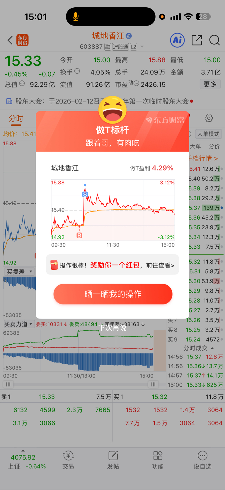 $城地香江(SH603887)$ 垃圾 补仓的T出去 赚了4个多点 差点不够你最后一砸
