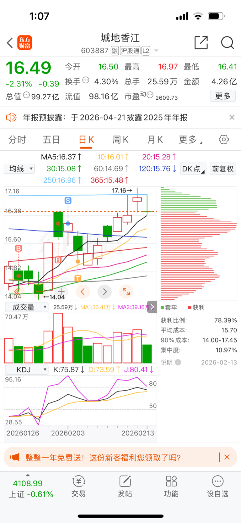 $城地香江(SH603887)$ 不加也不减看你表演,要加也是做T,有本事你再回14就当没赚再回去这个概率太低