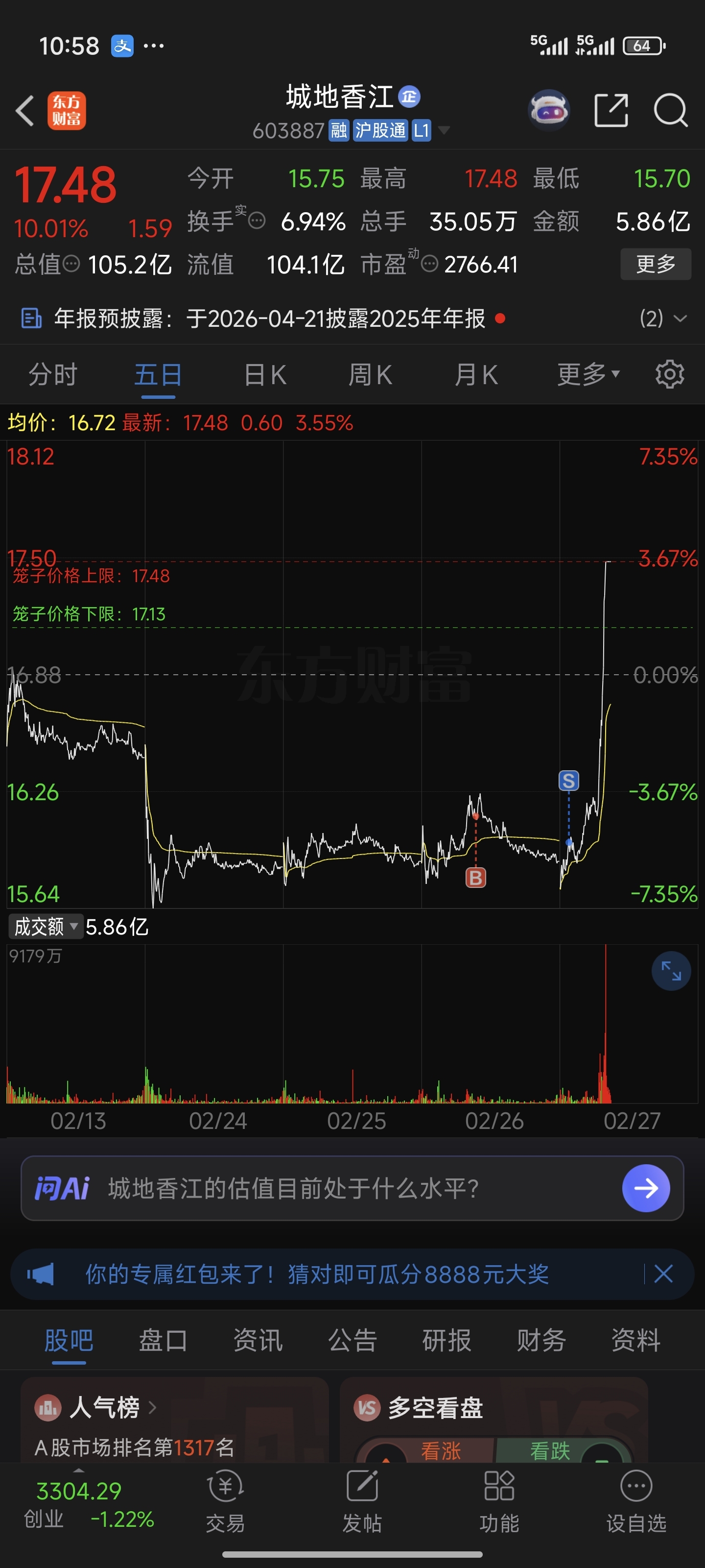 $城地香江(SH603887)$ 谢谢大家