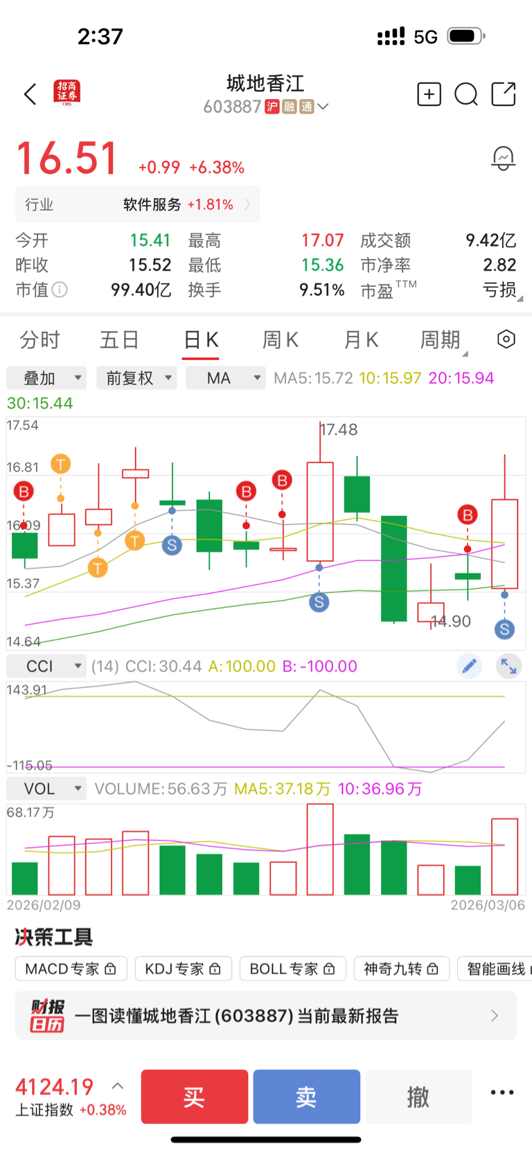 $城地香江(SH603887)$ 太给面子了主力