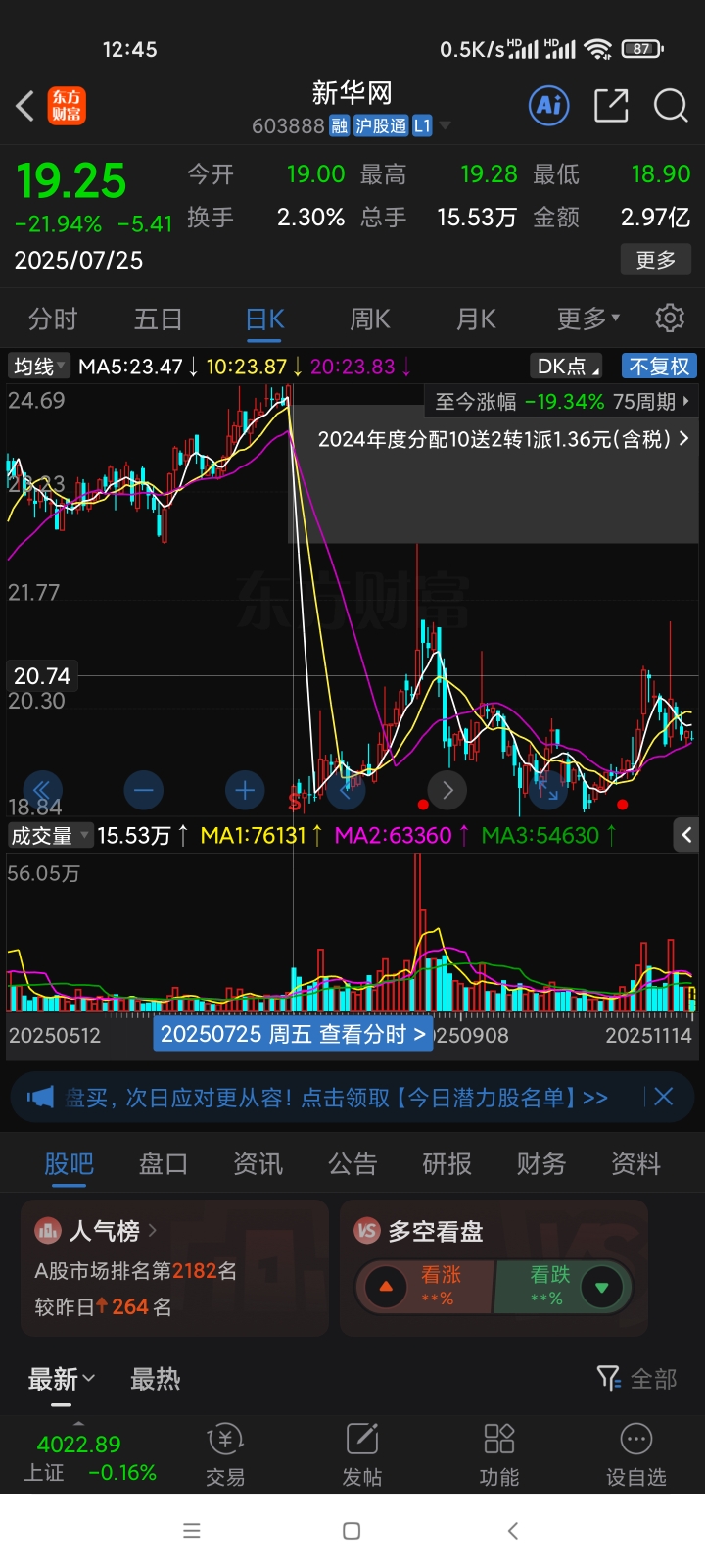 2025年7月25日十送三股票除权价,等待,填满权,行情第113天了。