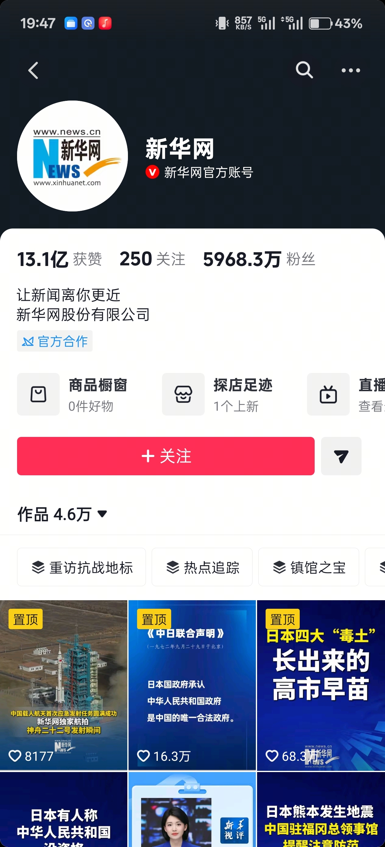 新华网一个dy5968万粉丝,全网上亿粉丝,前段时间还搞起了直播带货,咋就不单单