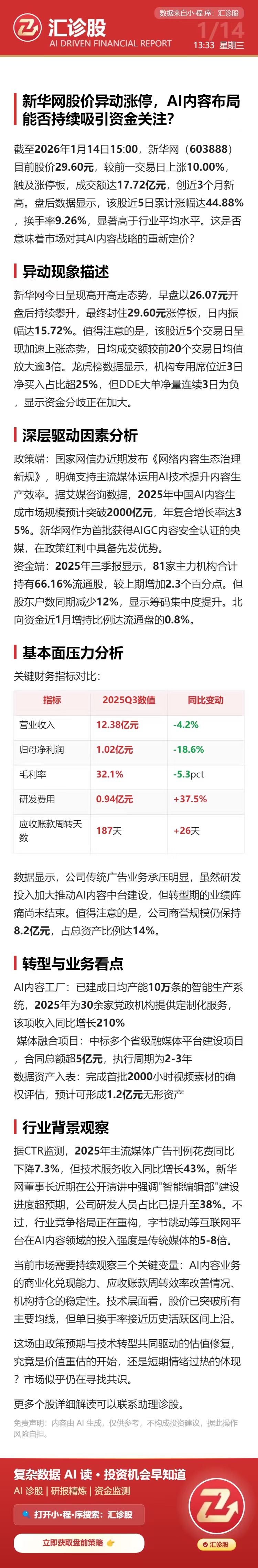 新华网股价异动涨停,AI内容布局能否持续吸引资金关注?
