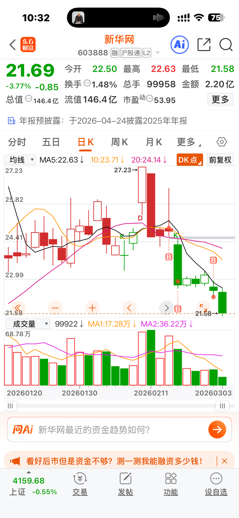 $新华网(SH603888)$ 你是把股民当什么了?几天时间连续跌了二十多个点就2天微反弹2个多点啊。这走势来一个套一个谁再买谁后悔。