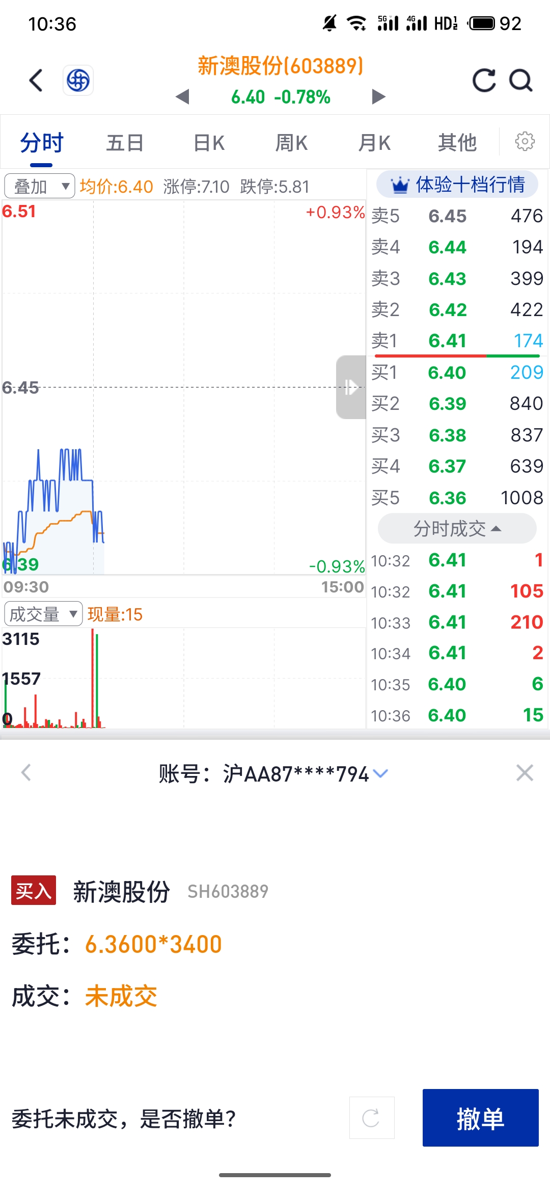 $新澳股份(SH603889)$ 砸到6.36入点货
